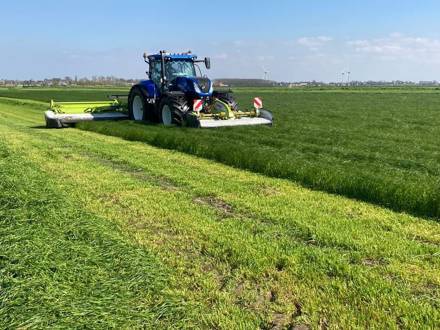 De maaiset is dezelfde middag nog in actie gekomen om een groenbemester in 1 keer op zwad te leggen. Hierdoor wordt harken overbodig en wordt de ruwe as in de kuil beperkt.