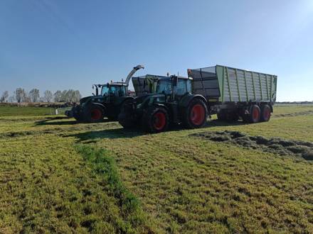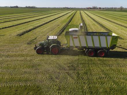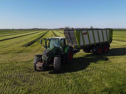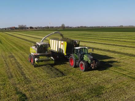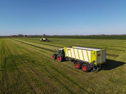 De vernieuwde KAWECO Radiums onderscheiden zich door hun hoge lossnelheid en daarmee capaciteit. Zoals te zien op foto’s konden de silagewagens gelijk worden ingezet voor de graswinning.
